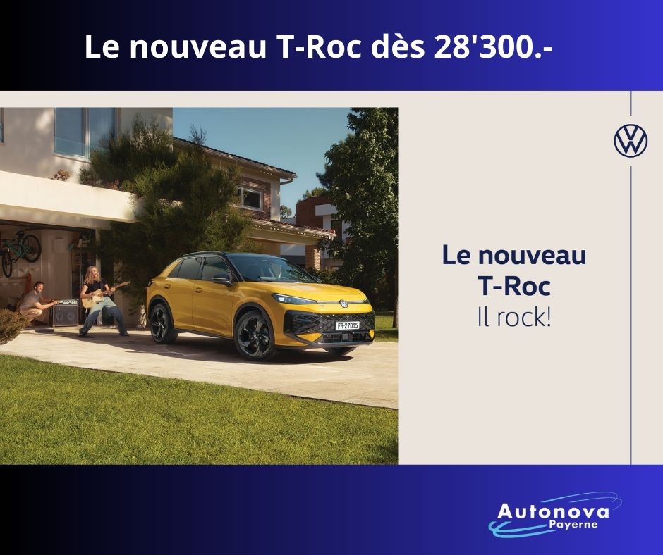 ça rock chez Autonova Payerne SA avec l’arrivée du nouveau T-Roc dès 28’300.-
